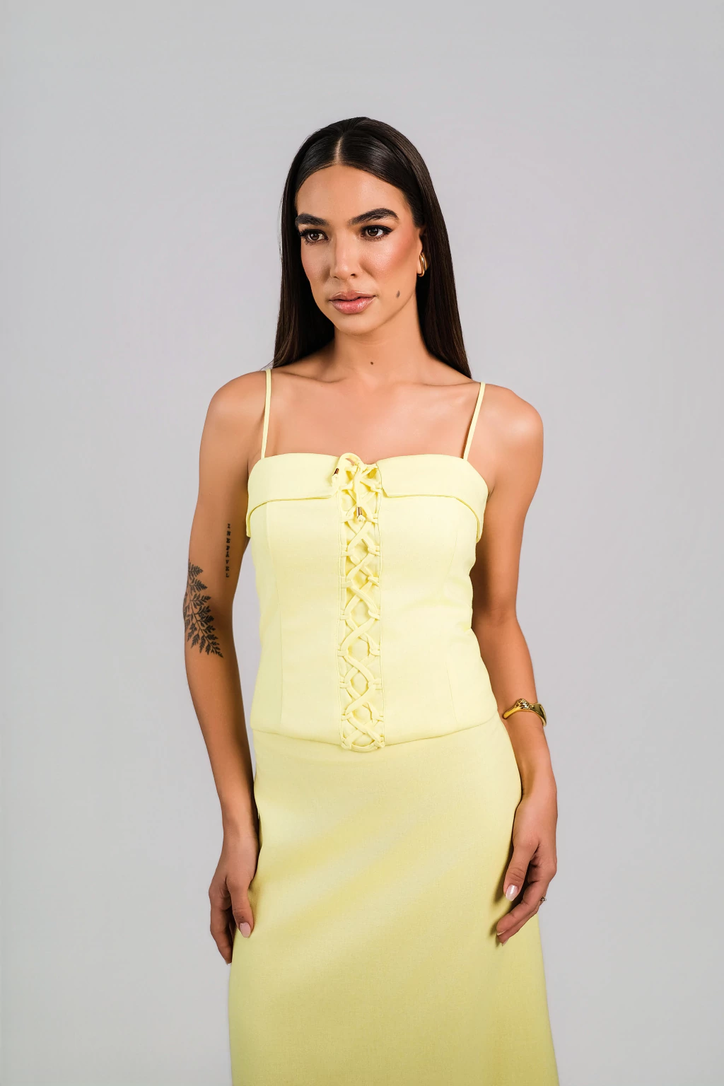 Com um design elegante e leve, a Blusa Monize traz um toque romântico e moderno ao look. O detalhe de amarração frontal com efeito corset valoriza a silhueta com sofisticação, enquanto as alças finas garantem um visual delicado e feminino.