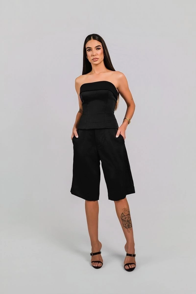 Confeccionado em tecido de alta qualidade, oferece firmeza, conforto e caimento impecável. Versátil, é ideal para composições que vão do casual chic a produções noturnas mais sofisticadas.