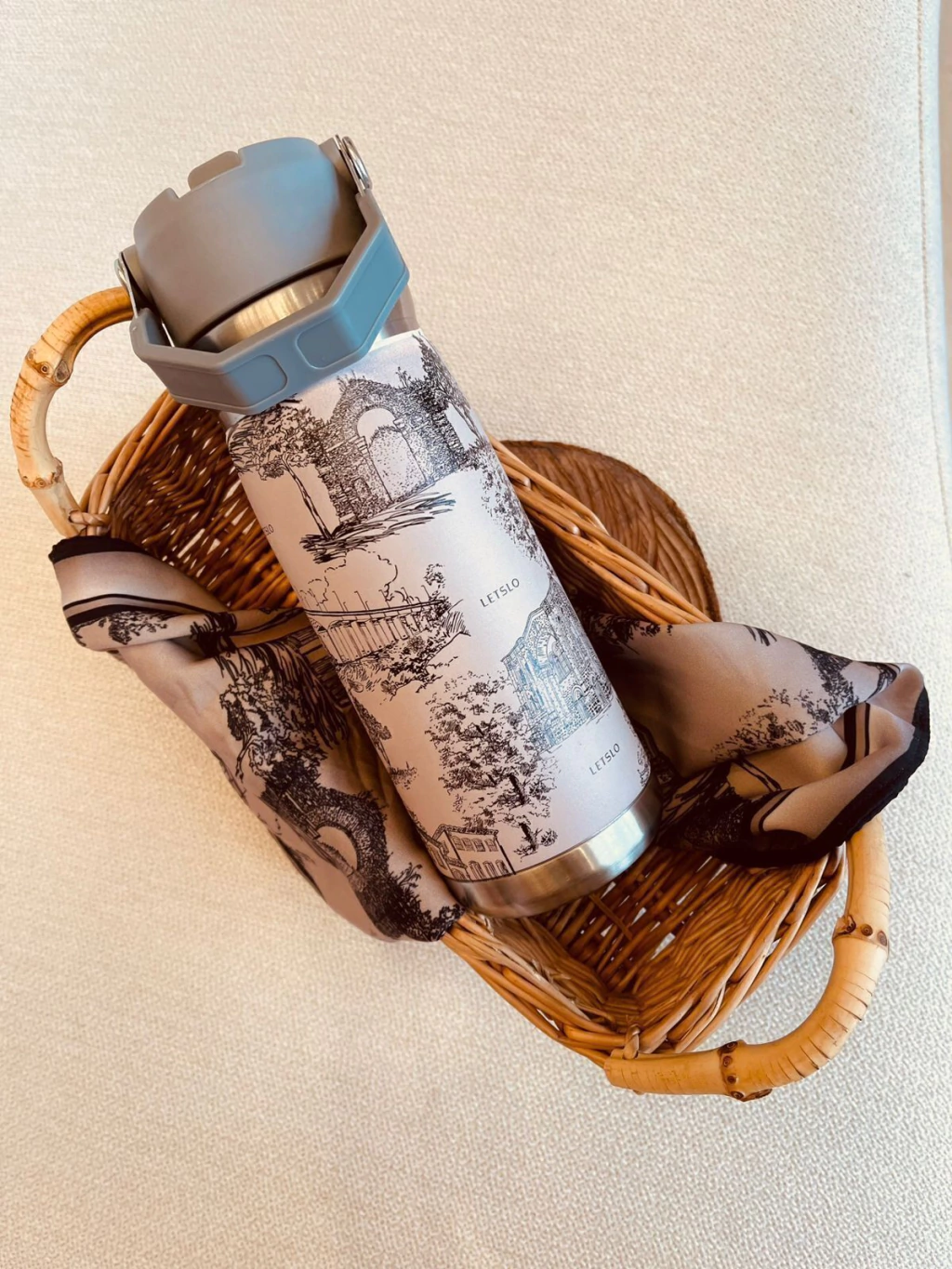 A Garrafa Tocantins é uma peça que une funcionalidade e estética em um design exclusivo Letslo. Seu corpo apresenta uma estampa artística em traços finos, inspirada em paisagens, arquitetura e elementos naturais que remetem ao lifestyle contemporâneo da marca — sofisticado, leve e cheio de identidade.